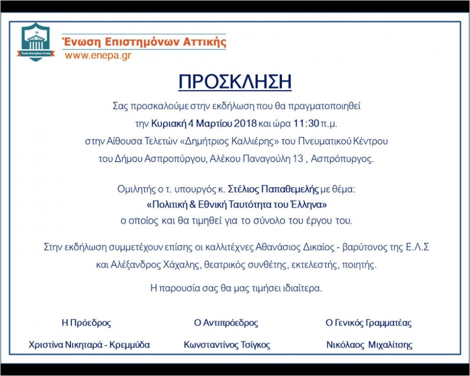 Τήν 28ην Φεβρουαρίου 2018 ἡμέρα Τετάρτη τό ἀπόγευμα ἡ Ἱερά Μητρόπολις Χίου, Ψαρῶν καί Οἰνουσσῶν ἐπραγματοποίησε Ἐκδήλωση μέ θέμα: “Ἡ Ἱστορία...