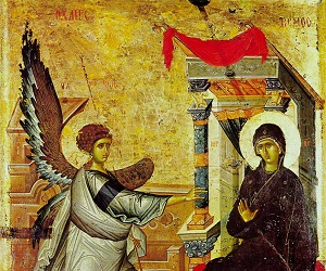 Today Gabriel, who stands before God, came to the pure virgin, announcing the glad tidings: ‘Hail, you who are full of grace’. She tried to think what kind of salutation this might be. But the angel went straight on to say: ‘The Lord is with you. Do not be afraid, Mary. You have found favour with God. You will conceive in your womb and give birth to a son and you shall name Him Jesus. He will be great, and will be called the Son of the Most High. And the Lord God will give Him the throne of His father David, and He will reign over the house of Jacob unto the ages And of His kingdom there will ...