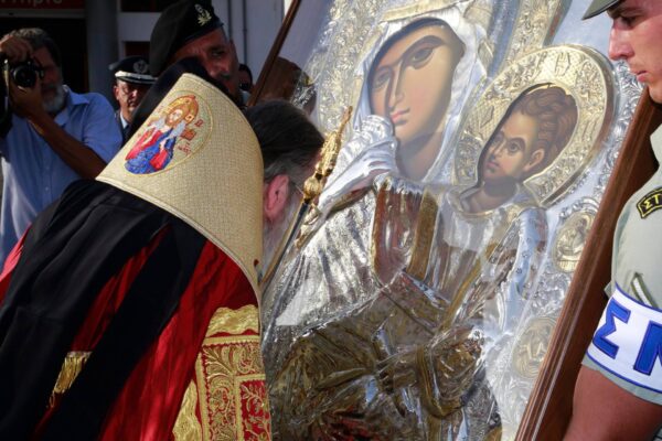 The Church today venerates the icon of the Panagia Paramyth-I-a, attributed in English as the Vatopedi Mother of Consolation...