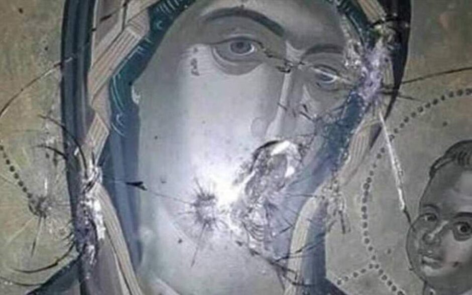 Icons depicting Jesus Christ and the Virgin Mary, have been shot in two churches on the northern Aegean island of...