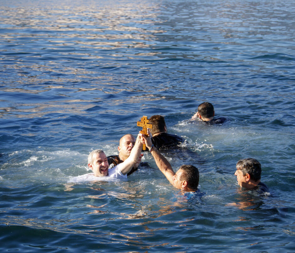 A local Priest dived into the sea on Holy Epiphany to catch the Crucifix as tradition dictates after none of...