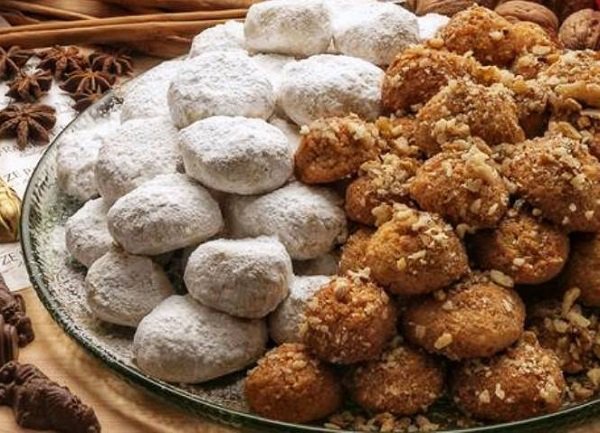 The most famous Christmas cookies in Greece are the traditional melomakarona and kourabiedes. Here we present the recipes for the most tasty way of cooking them, as a treat for friends and relatives. Happy cooking! Melomakarona (Christmas honey cookies) Ingredients: 1½ cups of oil 1½ cups of cooking fat 1 cup of sugar ¾ cup of orange juice ¼ cup of cognac 2 teaspoons of orange zest 2 teaspoons of baking powder 1 teaspoon of baking soda 8 cups of all purpose flour For the syrup: 2 cups of honey 2 cups of sugar 2 cups of water For the garnish 1½ cups of finely chopped walnuts, 1 teaspoon of ground cinnamon ½ teaspoon of ground cloves Method: Blend or mix the first six ingredients on high speed for four minutes. Sieve the flour, baking powder and soda into a mixing bowl. ...