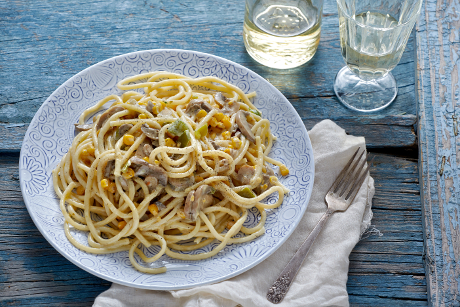 500 γρ. μακαρόνια 1 φυτική κρέμα γάλακτος light 2 κουταλιές της σούπας Ελαιόλαδο 200 γρ. μανιτάρια κομμένα (σε κονσέρβα) 2 μέτριες πιπεριές 200 γρ. καλαμπόκι...