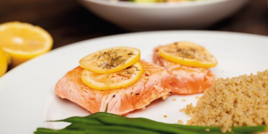 ΥΛΙΚΆ: 170 γραμμάρια φιλέτο σολομού, κομμένο στα 2 ½ κούπα PAUL’S FINEST ΚΙΝΟΑ 1 φλιτζάνι ζωμό λαχανικών γύρω στα 30 φασολάκια 1.5 κουταλιά λάδι...