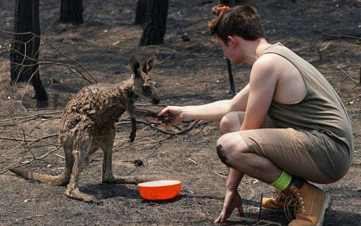 Ο φωτογραφικός φακός απαθανάτισε τη στιγμή Μια συγκινητική στιγμή απαθανάτισε ο φωτογραφικός φακός στην Αυστραλία κατά τη διάρκεια των πυρκαγιών...