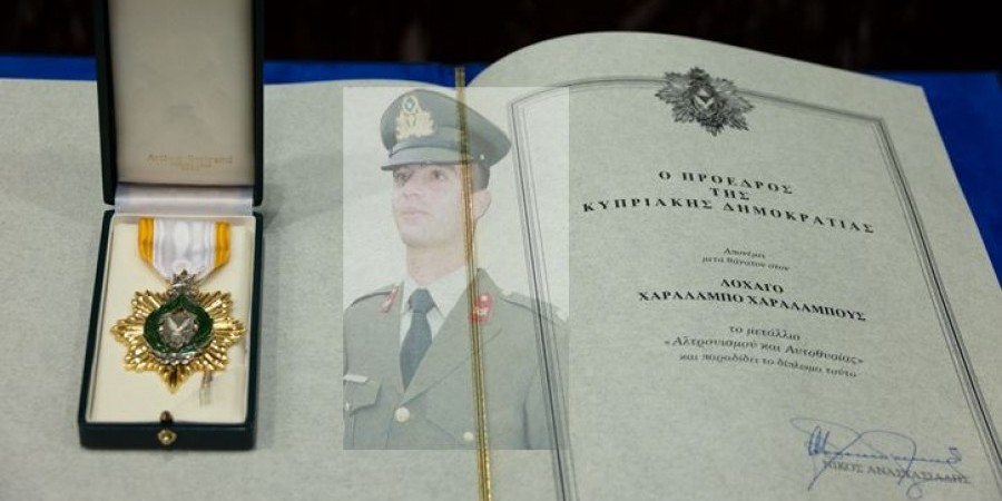 Απόδοση του μεταλλίου αλτρουισμού και αυτοθυσίας στον αποθανόντα Λοχαγό Χαράλαμπο Χαραλάμπους. Προεδρικό Μέγαρο, 24 Νοεμβρίου 2021. Ήταν Πέμπτη του 2009...