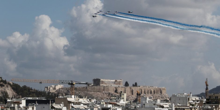 Δύο αεροπλάνα Rafale και το ακροβατικό σμήνος της Γαλλικής Αεροπορίας «Patrouille de France» πέταξαν πάνω από την Αθήνα για να...