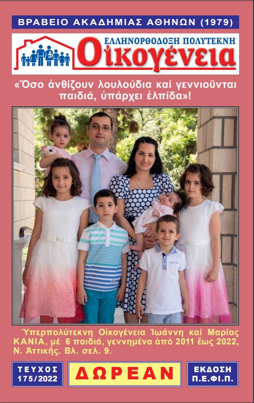 Κυκλοφορήθηκε το νέο φθινοπωρινό τεύχος του Περιοδικού «Ελληνορθόδοξη ΠΟΛΥΤΕΚΝΗ ΟΙΚΟΓΕΝΕΙΑ» (αρ.τ. 175/Σεπτέμβριος 2022). Είναι νομίζουμε αυτονόητο ότι αυτή την πολύ...