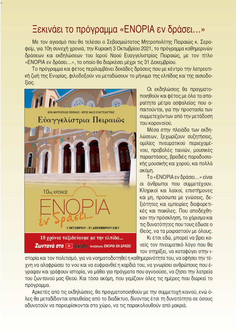 Κυκλοφόρησε η νέα Ενοριακή του Ιερού Ναού Ευαγγελιστρίας Πειραιώς. Φιλοξενείται το καθημερινό πρόγραμμα των ακολουθιών, δράσεις, εκδηλώσεις, ομιλίες αλλά και...