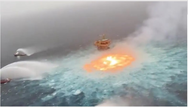 Η φωτιά είχε ξεσπάσει από διαρροή αερίου σε υποβρύχιο αγωγό Πυρκαγιά στην επιφάνεια του ωκεανού, δυτικά της χερσονήσου Γιουκατάν του...