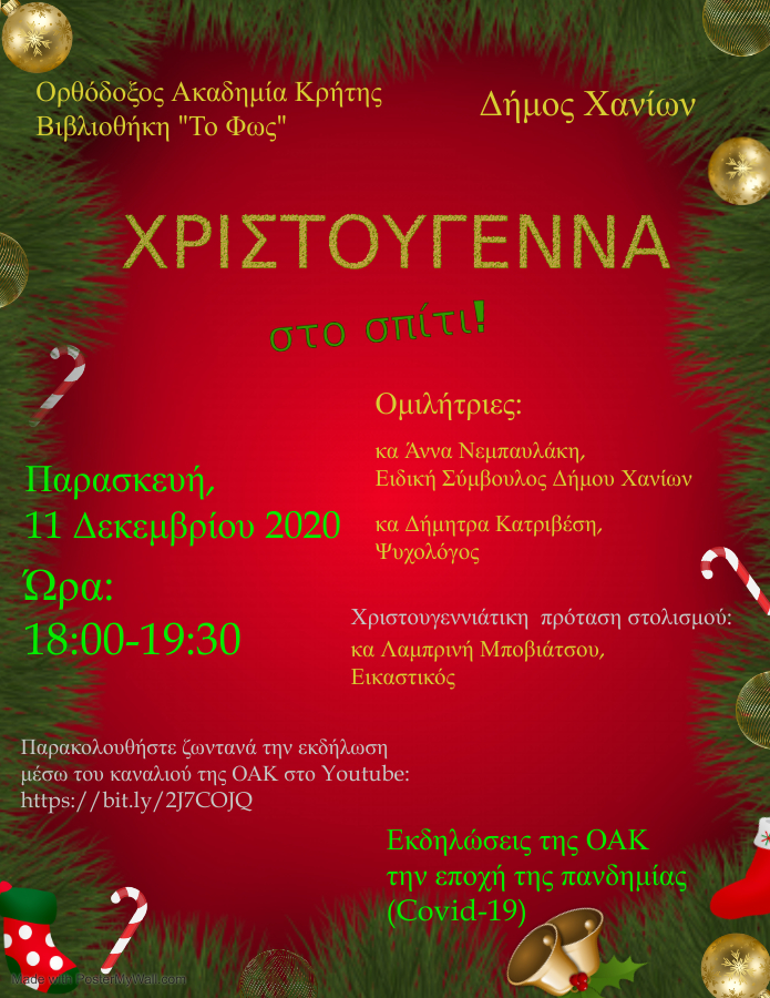 Χριστούγεννα στο σπίτι! Η Ορθόδοξος Ακαδημία Κρήτης (ΟΑΚ) και η Βιβλιοθήκη του Ιδρύματος «Το Φως», στο πλαίσιο των νέων διαδικτυακών...