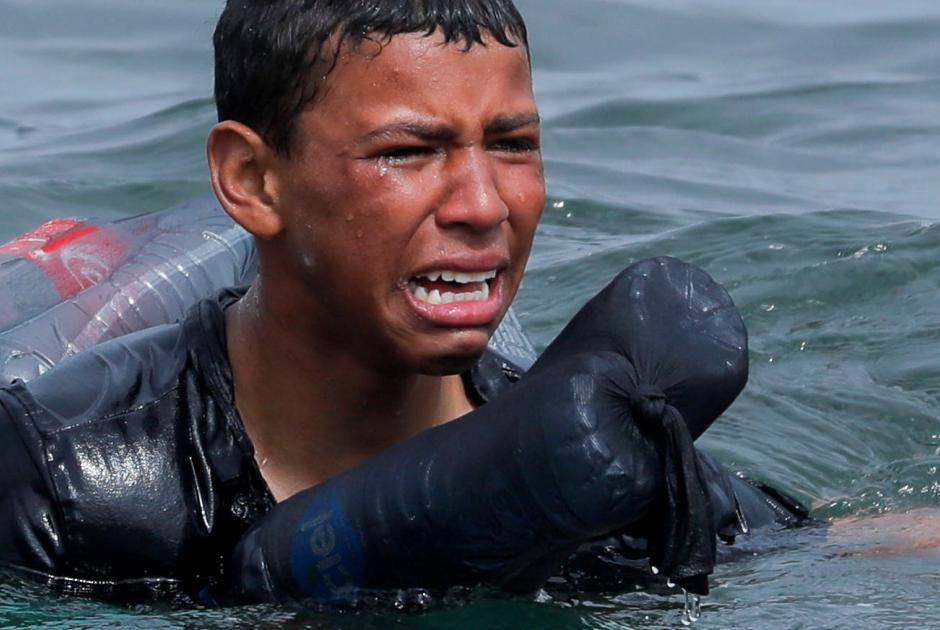 Ο νεαρός Μαροκινός κατάφερε να βγει στην ακτή, όμως τον συνέλαβαν οι στρατιώτες Ένας έφηβος έχει δέσει γύρω του πλαστικά μπουκάλια...