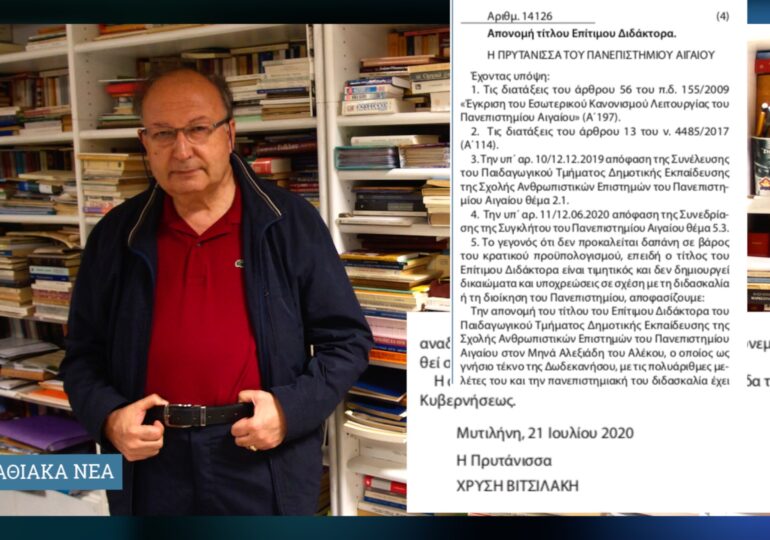 γράφει ο Μανώλης Δημελλάς Η Σύγκλητος του Πανεπιστημίου Αιγαίου, έπειτα από ομόφωνη εισήγηση της Γενικής Συνέλευσης του Παιδαγωγικού Τμήματος Δ.Ε.,...