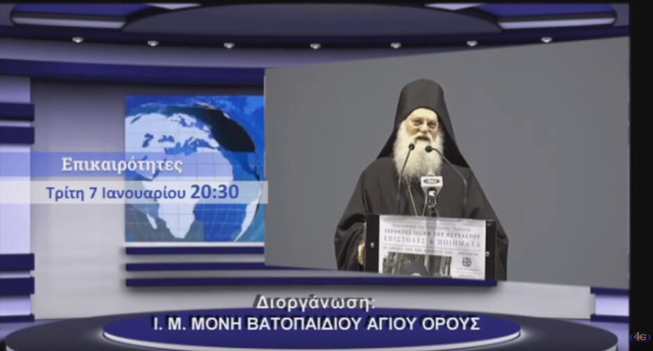 Την Τρίτη 7 Ιανουαρίου 2020 στις 20:30 θα προβληθεί στον τηλεοπτικό σταθμό 4Ε η εκδήλωση παρουσίασης της επετειακής εκδόσεως Γέροντος...