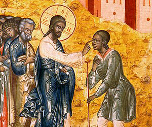 Jesus and the blind man, 6th century sarcophagus, L'abbaye Saint-Victor, France And as Jesus passed by, He saw a man who was blind from birth. And His disciples asked Him, saying, Master, who sinned, this man, or his parents, that he was born blind? 1. ‘And as Jesus passed by, He saw a man who was blind from birth’. Being full of love for us and caring for our salvation, and desiring to stop the mouths of the ungrateful, He overlooks nothing that is His to do, even if there’s no-one to pay attention. The Prophet knew this when he said: ‘that you might be justified in your words and prevail when you are judged’. So here, too, when they wouldn’t accept the sublime meaning of His words, but said that He had a devil, and attempted to kill Him, ...