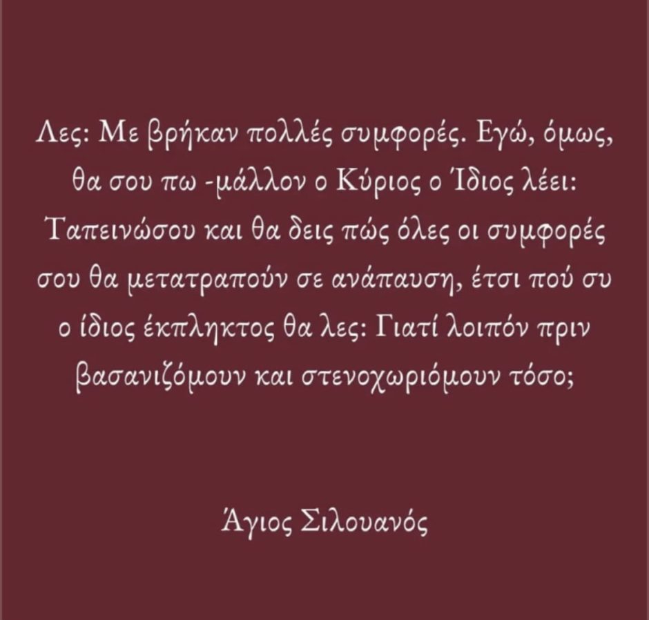 “Προσέξτε μην γκρινιάζετε. Η γκρίνια κουράζει αυτούς που ζούν κοντά σας και δυσαρεστεί το Θεό” Αρχίζετε την ημέρα σας με...