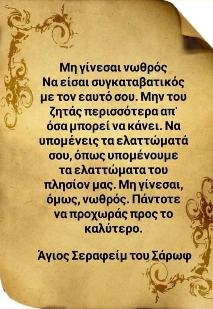 Μη φοβήσαι τους πειρασμούς. Καν πέσης πολλάκις, ανάστα. Μη χάνης την ψυχραιμίαν σου. Μην απογοητεύεσαι. Σύννεφα είναι και θα περάσουν....