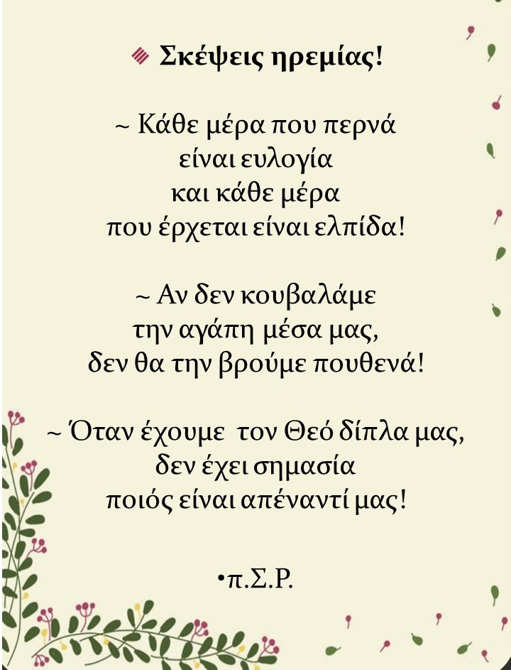 Είσαι άρρωστος; Να είσαι χαρούμενος. Γιατί «εκείνον που αγαπά ο Κύριος, τον παιδαγωγεί» (Εβρ. 12, 6). Είσαι φτωχός; Να ευφραίνεται...