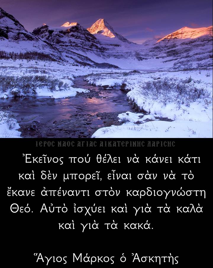 Ὅταν ἡ ψυχὴ προδώσει τὸν ἑαυτὸ της καὶ χάσει τὴν μακαρία καὶ πολυπόθητη θέρμη πού εἶχε στὴν ἀρχή, ἄς ἐρευνήσει...