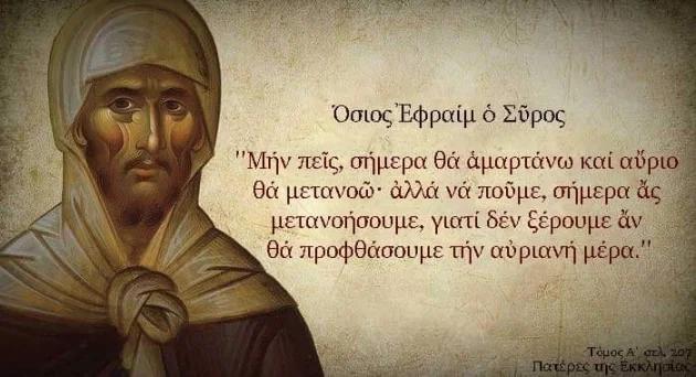 «Κύριε και Δέσποτα της ζωής μου, πνεύμα αργίας, περιεργείας, φιλαρχίας και αργολογίας μη μοι δως. Πνεύμα δε σωφροσύνης, ταπεινοφροσύνης, υπομονής...
