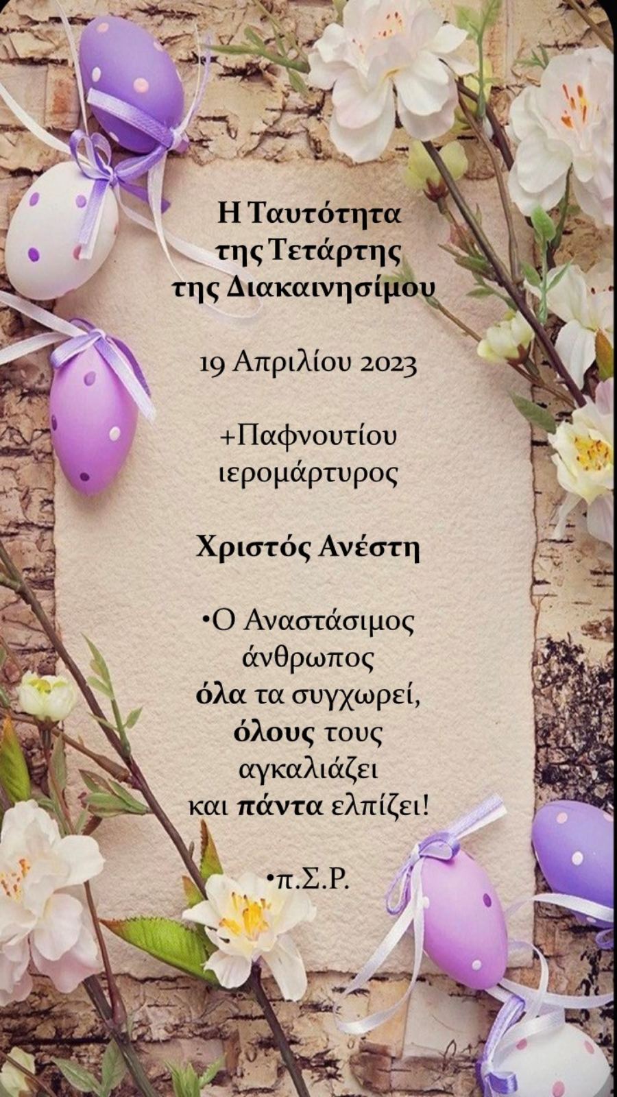 Ἀνάστασιν Χριστοῦ θεασάμενοι, προσκυνήσωμεν Ἅγιον, Κύριον, Ἰησοῦν τὸν μόνον ἀναμάρτητον. Τὸν Σταυρόν σου, Χριστέ, προσκυνοῦμεν, καὶ τὴν ἁγίαν σου Ἀνάστασιν...