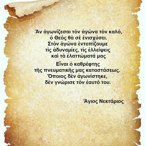 ” Ἂν ἀγωνίζεσαι τὸν ἀγώνα τὸν καλό, ὁ Θεὸς θὰ σὲ ἐνισχύσει. Στὸν ἀγώνα ἐντοπίζουμε τὶς ἀδυναμίες, τὶς ἐλλείψεις καὶ...