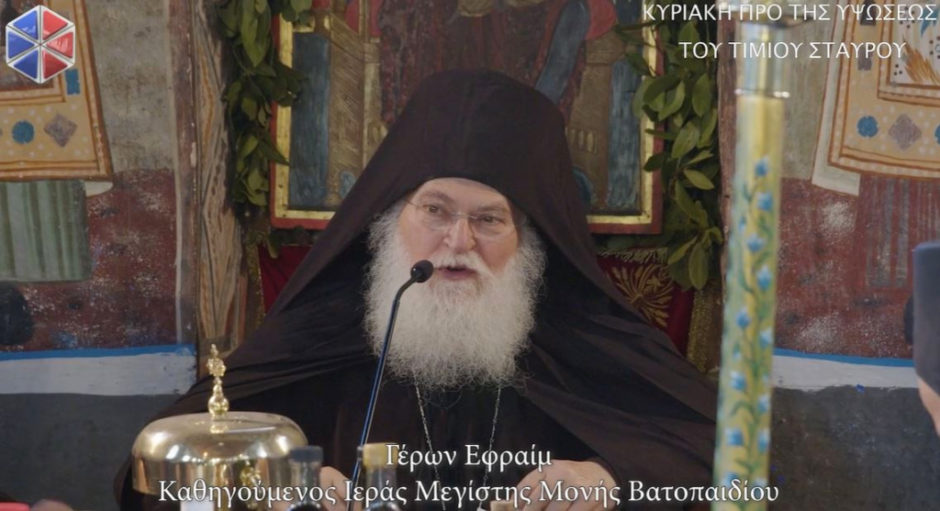 Κυριακή προ της Υψώσεως του Τιμίου Σταυρού με το παλαιό και στην τράπεζα της ΙΜΜ Βατοπαιδίου ο Γέροντας Εφραίμ μίλησε...