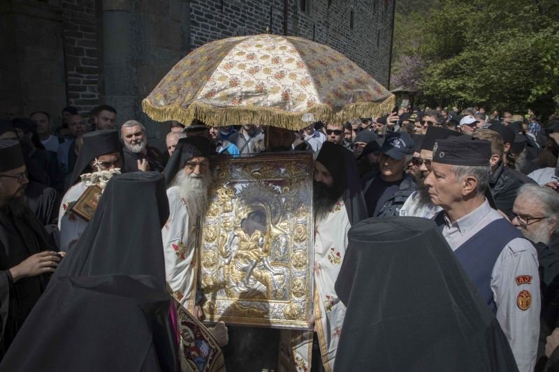Σε εξέλιξη βρίσκεται αυτή την ώρα η Λιτανεία της Εφέστιας Εικόνας της Παναγίας Άξιον Εστί στις Καρυές του Αγίου Όρους....