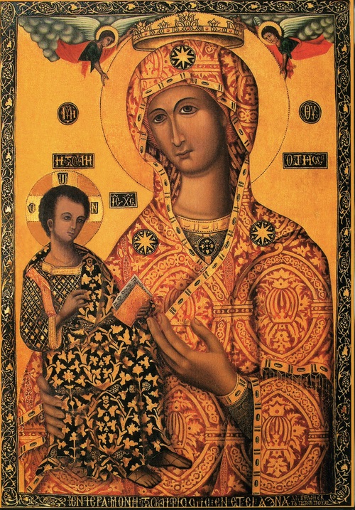 6. η πανάμωμη Παρθένος, χωρίς να έχη για πόλη της τον ουρανό, χωρίς να έχη γεννηθή από τα ουράνια...