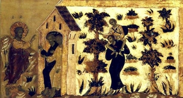 Και συλλαμβάνεται στην κοιλιά της αγίας μάνας του, που ήταν κοσμημένη με προφητικό χάρισμα, από τον ιερέα και προφήτη πατέρα...