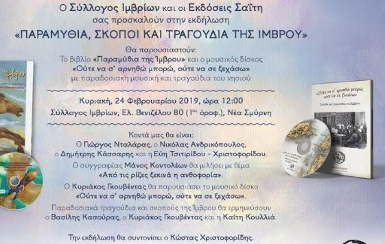 Δύο έργα που αποτυπώνουν το λαογραφικό πλούτο της Ίμβρου, το βιβλίο «Παραμύθια της Ίμβρου» και ο μουσικός δίσκος «Ούτε να...