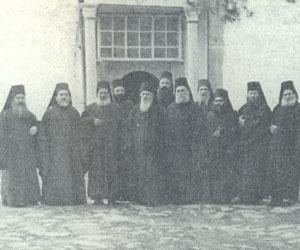 Ιερά Μονή Παντοκράτορος (Σχέδιο Ρ.Κοψίδη 1957) Ο κατά κόσμον Θεόδωρος Πάνος του Βασιλείου και της Δαρείας γεννήθηκε στο Σολοπώφ της Ρουμανίας το έτος 1893. Μετά τις σπουδές του εισήλθε προς μονασμό σε μονή της πατρίδος του. Κατόπιν αναχώρησε για τα Ιεροσόλυμα και κοινοβίασε σε ρωσική μονή με 150 μοναχούς το 1923. Γνώριζε και τη ρωσική γλώσσα. Η μη ακριβής τήρηση των νηστειών και η συχνή κατάλυση ελαίου τον σκανδάλισε κι έφυγε για το Άγιον Όρος το 1925. Στην αρχή μόνασε στη σκήτη του Αγίου Δημητρίου-Λάκκου. Εγκαταστάθηκε στο ερημητήριο του Αγίου Σάββα της Καψάλας και είχε μεγάλη ασκητική ζωή. Για την ενάρετη ζωή του και την ασκητικότητά του ήλθε πλησίον του ο ιεροδιάκονος Εύγραφος, που έμενε στην Καλύβη των Εισοδίων της Θεοτόκου, ...
