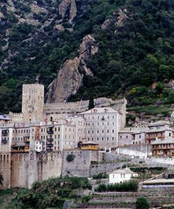 Ο μοναχός Γεώργιος Αγιοπαυλίτης στην κουζίνα της μονής Ήταν από το χωριό Χαυδάτα της Κεφαλλονιάς ο κατά κόσμον Γεράσιμος Παναγή Μοσχονάς. Το 1926 ήλθε στη μονή του Αγίου Παύλου, όπου υπήρχαν αρκετοί συμπατριώτες του, για να συναντήσει ένα θείο του, που μόναζε εκεί και που είχε σταθεί ευεργέτης του, όταν μικρός ορφάνεψε με τα πέντε αδέλφια του. Επρόκειτο περί του εναρέτου μονάχου Κωνσταντίου (t 1973). Η τάξη της μονής και η αρετή των πατέρων τον έκαναν να παραμείνει σε αυτή και να έγγραφε! δόκιμος το 1936. Εκάρη μοναχός το 1937. Συνεδέθη πνευματικά με τον μακαριστό ηγούμενο της μονής Γρηγορίου Αθανάσιο (t 1953), και τις συμβουλές του περί ξενιτείας, ακτημοσύνης και εγκρατείας διατήρησε ισόβια. Δεν είχε καμία αλληλογραφία και ούτε την παραμικρή ...