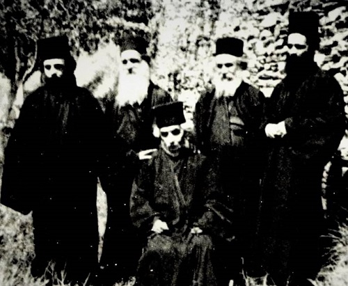 Ο Γέροντας Ησαΐας (καθήμενος) με τη συνοδεία του Γεννήθηκε, ο κατά κόσμον Αναστάσιος Ψυχόπουλος, στο Ικόνιο της Μ. Ασίας το 1890. Τότε, εκεί, στο Δημοτικό Σχολείο μαθαίνανε βυζαντινή μουσική. Προσήλθε στο Άγιον Όρος μικρό παιδί. Φόρεσε το τίμιο του μονάχου ένδυμα μόλις δώδεκα ετών, το 1902, υπακούοντας στους αυστηρούς Γέροντες του παρά τις Καρυές Λαυριώτικου Κελλιοΰ των «Καραμανλήδων» της Αγίας Τριάδος, όπως στον συμπατριώτη του Γέροντα Χριστόφορο († 1956). Αργότερα απόκτησε υποτακτικούς: τον συμπατριώτη του Γεράσιμο, κατά κόσμον Κωνσταντίνο Ελευθερόπουλο, που γεννήθηκε στο Ικόνιο το 1905 και εκάρη μοναχός στο Κελλί το 1925, τον Βασίλειο († 1976) και τον Κλήμη († 1955). Λόγω καταγωγής οι Καρυώτες τους έλεγαν «Καραμανλήδες». Γέροντας Ησαΐας ο ασκητικός Οι πατέρες αυτοί ήταν απλοί, εργατικοί, ταπεινοί, σιωπηλοί, ...