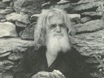 Ιερά Νέα Σκήτη (φωτ. 1880) Νάξιος στην καταγωγή, άκακος, ακέραιος, άδολος, απλούστατος στον χαρακτήρα, αληθινός παντού και πάντοτε. Ζούσε με πλήρη ακτημοσύνη και τέλεια εγκατάλειψη στον Θεό σε μία σπηλιά της Νέας Σκήτης, από το 1880, όπου ήλθε από μοναστήρι της Νάξου. Την είσοδο της σπηλιάς είχε καλύψει με κλαδιά και χόρτα για να μην τον βρίσκουν οι επισκέπτες. Μόνιμη κατοικία του ήταν η σπηλιά και συνεχής συντροφιά η απόλυτη φτώχεια. Εργόχειρο είχε την καλαθοπλεκτική. Τα καλαθάκια του έδινε στα μοναστήρια και λάμβανε το απαραίτητο παξιμάδι για τη ζωοτροφία του. Αν του έδιναν χρήματα, τα μοίραζε ελεημοσύνη στους φτωχούς. Ο Πανάγαθος Κύριος έσκυψε πάνω στους κόπους της ταπεινής του ασκήσεως και τον πλούτισε με σπάνια χαρίσματα· διόραση, προόραση, προφητεία. Αξιώθηκε ο ...