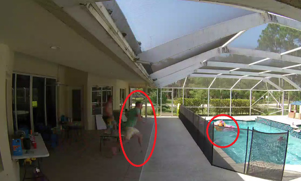 Δίχως να χάσει καιρό, ο μπαμπάς έκανε ένα άλμα-βουτιάς από τον φράχτη που υπήρχε στην άκρη της πισίνας, τη στιγμή...