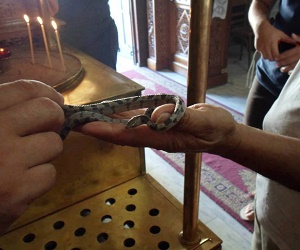 Σε μια πλαγιά στο νότιο μέρος της Κεφαλονιάς περίπου 25 χιλιόμετρα από τη πρωτεύουσα το Αργοστόλι, βρίσκεται το θαυμαστό χωριό Μαρκόπουλο. Θαυμαστό γιατί σε αυτό το τόπο δεσπόζει στο κέντρο του, σαν φάρος ολόλαμπρος η Παναγία η Φιδούσα ή Λαγγουβαρδιώτισσα, που σκεπάζει με τη Χάρη της ολάκερο το Νησί. Εκεί στο φημισμένο μπαλκόνι του Ιονίου, βρίσκεται το χωριό που αγναντεύει τη πεδιάδα του Ελειού και το απέναντι νησί τη Ζάκυνθο. Σε αυτό το μέρος, το Μαρκόπουλο, το φαινόμενο να βγαίνουν φίδια, διαφορετικά από όλα τα άλλα, φίδια με σώμα ζεστό, με μεταξένια υφή, που δέχονται να τα πιάνουν οι πιστοί, χωρίς να είναι δηλητηριώδη, με το σήμα του Σταυρού στο κεφάλι τους, κατά την Εορτή της Κοιμήσεως της Θεοτόκου, είναι ΜΟΝΑΔΙΚΟ. Το ...