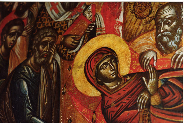 Τι παραλαμβάνει ο Κύριος; Το σώμα η την ψυχήν της Θεοτόκου; Ερμηνεύοντας την θεολογία της υμνογραφίας, σε συνδυασμό με την ιερά παράδοση, η οποία αποτυπώνεται και στην ορθόδοξη εικονογραφία, ο Χριστός έρχεται να παραλάβει την ψυχήν της Αγίας Μητρός Του. Στο προεόρτιο Δοξαστικόν των Αποστίχων βεβαιώνεται σαφώς, «εν ταίς του Υιού χερσί, σήμερον την παναγίαν παρατίθεται ψυχήν» και στο α' Απόστιχον της εορτής, ομοίως: «Αυτού ταις αγίαις χερσί, την ψυχήν παραθεμένη». Μάλιστα, ο πολύς Ιωάννης Δαμασκηνός στον Κανόνα (β' τροπάριον η΄ Ωδής) σημειώνει το εξής εκπληκτικό: «Ούτος το πανίερον πνεύμα σου δεξάμενος, εν εαυτώ κατέπαυσεν, ως οφειλέτης Υιός». Εάν, όμως, ο Δεσπότης Κύριος παραλαμβάνει την ψυχήν και το πνεύμα της Παναγίας, πώς «αι υπέρταται Δυνάμεις... το θεοδόχον και ακραιφνέστατον σώμα προπέμπουσι, τω ...