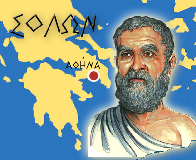 Ένας κοσμογυρισμένος σοφός ήταν ο Σόλωνας από την Αθήνα. Είδε και άκουσε πολλά στα εμπορικά του, κυρίως, ταξίδια και με την εμπειρία και τη σοφία του αγάπησε και ύμνησε περισσότερο την πατρίδα του, την Αθήνα. Οι συμπατριώτες του Αθηναίοι, εκτιμώντας τη φιλοπατρία του αλλά και τη σεμνότητα και το βάθος της σοφίας του, του ανέθεσαν τη δημιουργία της νομοθεσίας τους, γιατί ξέραν πως διακήρυσσε: μόνο αν μάθεις να άρχεσαι θα ξέρεις και να άρχεις, να εξουσιάζεις δηλαδή. Κι ακόμα τόνιζε, μη λες ψέματα αλλά την αλήθεια και ποτέ σου να μην πέφτεις σε υπερβολές (Μηδέν άγαν). Και πράγματι στη νομοθεσία του εφάρμοσε το ότι οι συμβουλές μας πρέπει να είναι για τα πιο καλά κι όχι για τα πιο ευχάριστα. ...