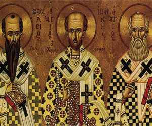 Σοφοκλής (496 π.Χ.- 406 π.Χ.) Οι Τρεις Ιεράρχες και άλλοι μεγάλοι Πατέρες υπήρξαν οι συνεχιστές των Ελληνικών Γραμμάτων και γενικότερα της ελληνικής παιδείας. Θέλω να δώσω σχετικά παραδείγματα που δεικνύουν την προαναφερόμενη επίδραση. Στο Α’ Στάσιμο της «Αντιγόνης» του Σοφοκλή ο μέγας αυτός τραγικός ποιητής πλέκει τον ύμνο του ανθρώπου και αρχίζει με το γνωστό «Πολλά τα δεινά και ουδέν ανθρώπου δεινότερον πέλει». Δηλαδή, πολλά είναι τα θαυμαστά, αλλά τίποτε πιο θαυμαστό από τον άνθρωπο. Ακολουθούν οι υπόλοιποι στίχοι του Στασίμου κατ’ επιλογήν στη νέα ελληνική: Περνά την αφρισμένη θάλασσα με τις φορτούνες του νοτιά Και την υπέρτατη θεά τη Γη παιδεύει οργώνοντάς τη Και των αστόχαστων πτηνών τις φυλές κυνηγά με τα βρόχια και των αγρίων θηρίων τα πλήθη. Ένας τον άλλον δίδαξε τη γλώσσα, ...