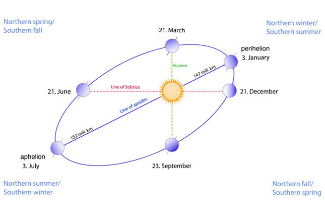 Η Γη στο περιήλιο: Στις 3 Ιανουαρίου, στην καρδιά κυριολεκτικά του χειμώνα, η Γη μας θα βρίσκεται στην πλησιέστερη απόστασή της από τον Ήλιο, και για να κυριολεκτούμε η Γη θα βρίσκεται αρκετά εκατομμύρια χιλιόμετρα πλησιέστερα στον Ήλιο απ’ ότι τον Ιούλιο! Κι αυτό γιατί η τροχιά της Γης γύρω από τον Ήλιο δεν είναι ένας τέλειος κύκλος αλλά μία έλλειψη. Η Γη φτάνει στην πλησιέστερη απόστασή της από τον Ήλιο, που ονομάζεται «περιήλιο», στις αρχές Ιανουαρίου, και πιο συγκεκριμένα φέτος στις 3 Ιανουαρίου σε απόσταση 147.100.176 χλμ. Αντίθετα στις 4 Ιουλίου 2016 θα βρεθεί στο αφήλιο, δηλαδή στο πιο απόμακρο από τον Ήλιο σημείο της τροχιάς της σε απόσταση 152.103.775 χλμ. Καθώς λοιπόν η Γη πλησιάζει τον Ήλιο στη ...