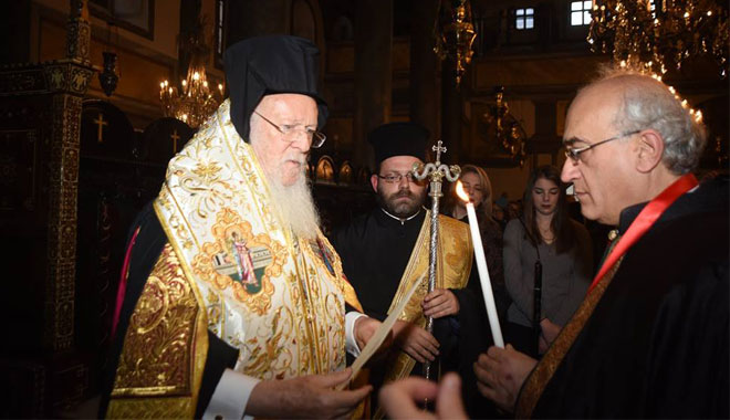 Χαιρετισμός της Α.Θ. Παναγιότητος του Οικουμενικού Πατριάρχου κ.κ. ΒΑΡΘΟΛΟΜΑΙΟΥ προς την Σεβ. Ιεραρχίαν και το πλήρωμα του Οικουμενικού Θρόνου επί τη πρώτη του έτους (1 Ιανουαρίου 2016) Ιερώτατοι και προσφιλέστατοι άγιοι αδελφοί, Εντιμολογιώτατοι Άρχοντες της Μητρός Αγίας του Χριστού Μεγάλης Εκκλησίας, Εντιμότατε κύριε Ευάγγελε Σέκερη, Γενικέ Πρόξενε της Ελλάδος ενταύθα, Τέκνα της ημών Μετριότητος εν Κυρίω αγαπητά, «Συ ει η ζωή των ζώντων, Κύριε... η πάντων ζωαρχική αιτία και δύναμις, ποιητική Λόγε του Θεού», ο «χρόνους και καιρούς εν τη ιδία εξουσία θέμενος», ευχαριστούμεν Σοι, τω μόνω ελεήμονι και ευσπλάγχνω, τω έχοντι ακατάληπτον αγαθότητος πέλαγος, τω γινώσκοντι την φύσιν των ανθρώπων, ην εδημιούργησας» (πρβλ. τροπάριον Παρακλητικής γ΄ ήχου, σελ. 358)∙ ότι ηξίωσας την Μητέρα Εκκλησίαν και πάντας ημάς εισελθείν εις τον νέον ενιαυτόν της Χάριτός Σου, εντός ενός κόσμου αβεβαίου, όπου ...