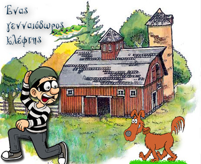 - Γαβ, γουβ, γαβ, γουβ... Γαβ, γαβ, γαβ, φύγε από τον τοίχο μας. Ο ασπρόμαυρος σκύλος του εξοχικού σπιτιού δε σταματούσε να γαβγίζει και να τρέχει πέρα δώθε τον μαντρότοιχο που τον σκέπαζε ο κισσός. - Τιρ, τιρ, τι, τιτι... τι τον έπιασε νυχτιάτικα; Tα μικρά σπουργιτάκια, που είχαν φωλιάσει στην κουφάλα του γέρικου πεύκου της αυλής, έβγαλαν τα κεφαλάκια τους παραξενεμένα κι αναρωτιόντουσαν. - Τορ, τορ, τι, ένας κλέφτης είναι σκαρφαλωμένος στον μαντρότοιχο! Το πιο μεγάλο σπουργίτι της παρέας κουνούσε το ράμφος του πάνω κάτω, ενώ τα φτεράκια του είχαν σηκωθεί από την ανατριχίλα… Μα κι ο σκύλος δεν έπαυε, αλλά έδειχνε και τα δόντια του απειλητικά μουγκρίζοντας… - Σςς, σώπα καλό σκυλάκι… είμαι φίλος του αφεντικού σου… σώπα… εσύ είσαι ο καλύτερος σκύλος της ...