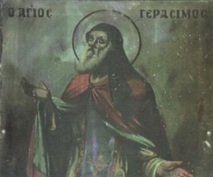 Κατά το έτος 1571 ο Άγιος έζησε τα γεγονότα επιδρομής του υπό οθωμανική μοίρα στόλου εναντίον της Κεφαλλονιάς κατά μήνα Ιούλιο. Η βίαιη αυτή πολεμική πράξη ήταν πρόδρομος της ναυμαχίας των Εχινάδων-Κουρτζουλάρων της γνωστής με το όνομα «ναυμαχία της Ναυπάκτου» που ξέσπασε στις 7 Οκτωβρίου την ίδια χρονιά. Ο Άγιος Γεράσιμος δεόμενος για την αίσια έκβαση της ναυμαχίας της Ναυπάκτου. Ιερός Ναος Αγίου Νικολάου Φαρακλάτων, 19ος αί. Η ευαίσθητη καρδιά του Αγίου τρώθηκε από πόνο καθώς μέσα του ξύπνησαν μνήμες της άλωσης της Βασιλεύουσας, των μαρτυρίων των προγόνων του, της προσφυγιάς, της δυστυχίας. Κατ’ εκείνα τα χρόνια η Κεφαλλονιά βρισκόταν υπό την Ενετική κυριαρχία η οποία μαχόταν την Ορθόδοξη Εκκλησία και προκαλούσε στον λαό διχασμό με την ταξική διαφορά που επέβαλε ...