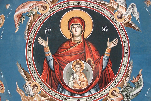 Από την προς Εβραίους Επιστολή (Κεφ. Θ’) «Αδελφοί, Χριστός δε παραγενόμενος αρχιερεύς των μελλόντων αγαθών δια της μείζονος και τελειοτέρας σκηνής, ου χειροποιήτου, τουτ’ έστιν ου ταύτης της κτίσεως, ουδέ δι’ αίματος τράγων και μόσχων, διά δε του ιδίου αίματος εισήλθεν εφάπαξ εις τα Άγια, αιωνίαν λύτρωσιν ευραμενος.» Η μεν παλαιά λατρεία δεν οδηγούσε στον ουρανό, ο δε Χριστός αφού ήλθε αρχιερέας γι’ αυτό τον σκοπό, το να θυσιάσει το δικό του σώμα για τις αμαρτίες μας, μπήκε στα άγια, δηλαδή στον ουρανό. Ονομάζει δε ο Απόστολος «σκηνήν», «καταπέτασμα» και «ουρανόν» το σώμα του Κυρίου μας, επειδή όπως το καταπέτασμα διαχωρίζει τα άγια, η σκηνή έχει μέσα τον ιερέα και ο ουρανός κρύβει την Θεότητα, έτσι και η σάρκα του Κυρίου κρύβει ...