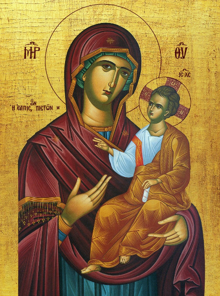 Παρθένα στήριγμα γλυκό Μητέρα του Θεού μας που είσαι για μας παρηγοριά στο σώμα και στο νου μας Βασίλισσα των...