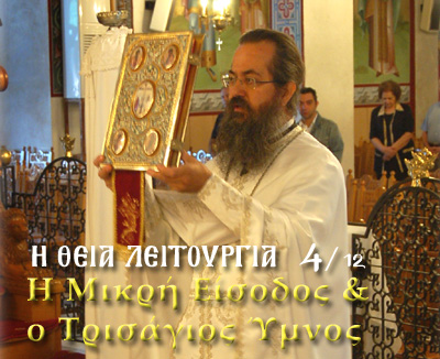 Στη συνέχεια γίνεται η Μικρή Είσοδος ή Είσοδος του Ευαγγελίου. Προπορεύεται κάποιος που κρατά αναμμένη λαμπάδα, που συμβολίζει τον Άγιο Ιωάννη τον Πρόδρομο, κι ο ιερέας ή ο διάκονος διασχίζει όλον τον ναό κρατώντας το Ευαγγέλιο. Μπροστά στο ιερό, στο κέντρο του ναού, λέει δυνατά: “Σοφία, ὀρθοί”. Αυτό το Ευαγγέλιο, δηλαδή, περιέχει την Αλήθεια, το Λόγο του Θεού, κι όλοι όρθιοι την υποδεχόμαστε και θέλουμε να την πληροφορηθούμε αλλά και να την αποδεχτούμε. Η Μικρή Είσοδος συμβολίζει την επίγεια ζωή του Χριστού μας την οποία διήλθε κηρύττοντας και ευργετώντας. Ο ψάλτης ψάλλει “Δεῦτε προσκυνήσωμεν καί προσπέσωμεν Χριστῷ...” - Ας προσκυνήσουμε κι ας πέσουμε στα γόνατα μπροστά στο Χριστό μας και στη συνέχεια κάποια απολυτίκια, δηλαδή ορισμένα τροπάρια που ορίζονται από το ...