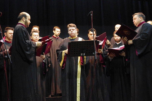 Στον Εσπερινό της εορτής της Κοιμήσεως της Θεοτόκου ψάλλεται στον Εσπερινό το Οκτώηχο Δοξαστικό ''Θεαρχίω νεύματι'' του Ιακώβου Πρωτοψάλτου. πρόκειται για ένα αριστουργηματικό στιχηραρικό μέλος το οποίο παραπέμπει στην μεγάλη παράδοση των οκτώηχων μαθημάτων της μουσικής φιλολογίας. Το ιδιαίτερο μουσικό ενδιαφέρον του δοξαστικού βρήσκεται στον τρόπο που εξελίσεται η μουσική σύνθεση με την οκτάηχη μορφή να αναπτύσσεται κατά ζεύγος των κυρίων και πλαγίων ήχων. Η εκτέλεση που ακολουθεί προέρχεται από αγρυπνία στην Ιερά Μεγίστη Μονή Βατοπαιδίου. Στον δεξιό χορό είναι οι Θεσσαλονικείς Υμνωδοί και στον αριστερό χορό ο βατοπαιδινός χορός. %khcvfdgcvbkjgtgh%