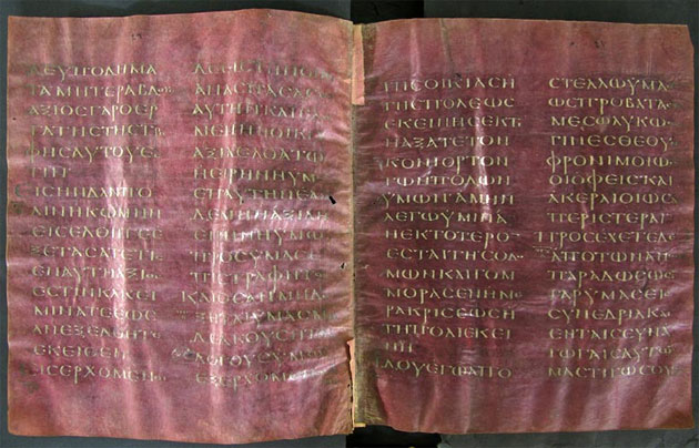Ιδιαίτερο ενδιαφέρον για την ιστορία του κειμένου της Κ. Διαθήκης παρουσιάζουν οι τέσσερις πορφυροί κώδικες του 6ου αιώνα. Πρόκειται για τους μόνους γνωστούς πορφυρούς κώδικες της Κ. Διαθήκης, γραμμένους στην ελληνική γλώσσα. Πρώτος και φημισμένος κώδικας είναι ο Ν (022) = codex purpureus Petropolitanus, του 6ου αιώνα, με ασημένια γράμματα. Από την πολυτέλεια της κατασκευής του και τη μεγαλοπρέπεια της εμφανίσεώς του συμπεραίνουμε ότι πρόκειται για αυτοκρατορικό κώδικα, που είτε τον χρησιμοποιούσε ο ίδιος ο αυτοκράτορας, είτε τον προσέφερε ως δώρο κάπου. Είναι σημαντικό να αναφέρουμε ότι ο Μ. Κωνσταντίνος το 331 είχε παραγγείλει στο εργαστήριο του Ευσεβίου Καισαρείας 50 κώδικες, για να τους δωρήσει σε ισάριθμες Εκκλησίες. Δύο από αυτούς, του Μ. Κωνσταντίνου, σώζονται μέχρι σήμερα και είναι οι περίφημοι ...