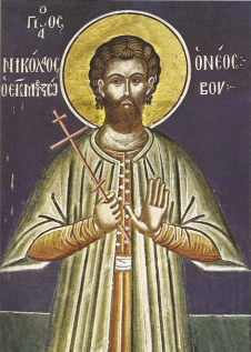 Μαρτύρησε στα Τρίκαλα στις 17 Μαΐου 1617 Ο άγιος νεομάρτυς Νικόλαος καταγόταν από το Μέτσοβο της Ηπείρου, από γονείς ευσεβείς. Νέος στην ηλικία πήγε στα Τρίκαλα της Θεσσαλίας ,όπου εργαζόταν σ’ ένα φούρνο. Μετά από αρκετό καιρό κάποιοι Τούρκοι, με δόλο, με υποσχέσεις, με φοβερισμούς και συκοφαντίες τον κατάφεραν ν’ αρνηθεί τον Χριστό. Σύντομα όμως συνειδητοποίησε τι έκανε, επέστρεψε στην πατρίδα του και ζούσε πάλι ως χριστιανός. Κάποτε, μαζί με άλλους συμπατριώτες του, φόρτωσε και αυτός το άλογό του με δαδί και πήγε να το πουλήσει στα Τρίκαλα. 5019